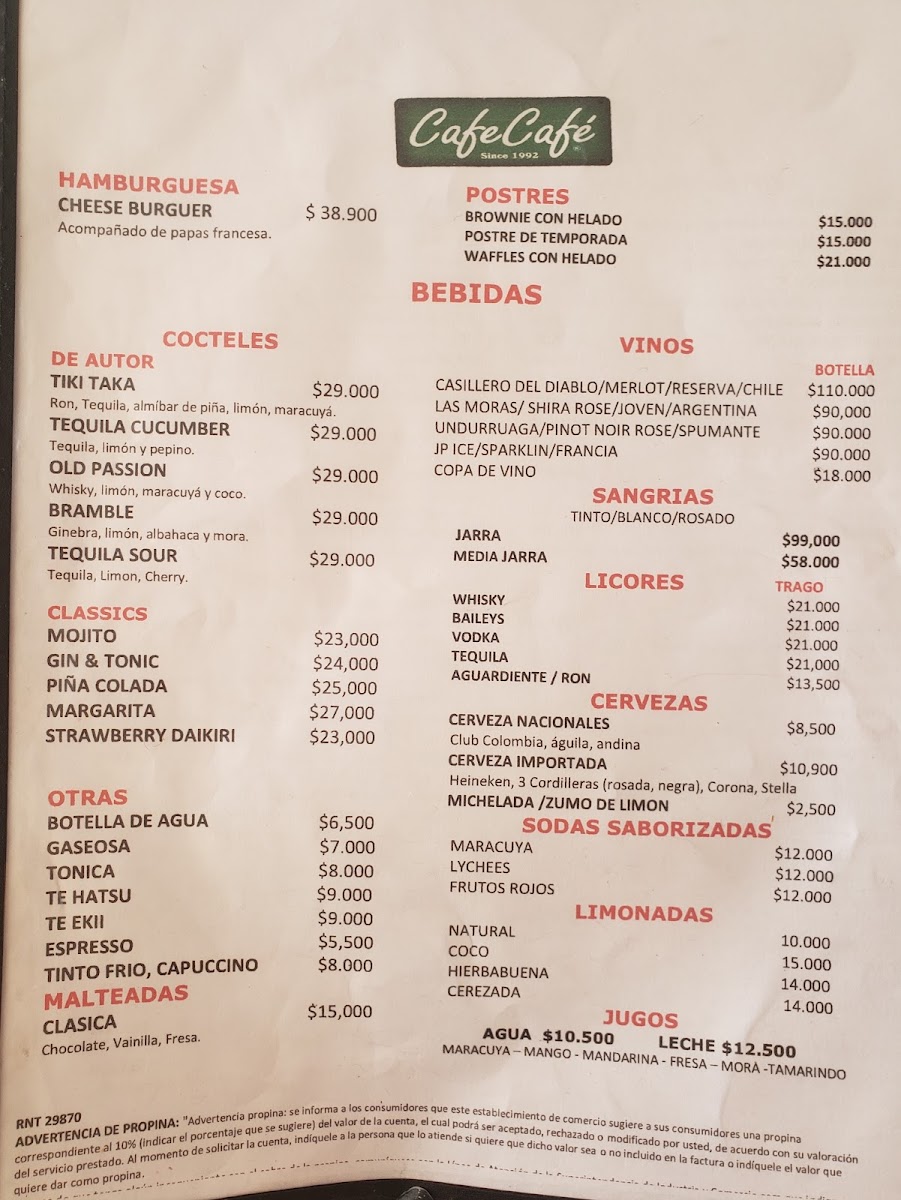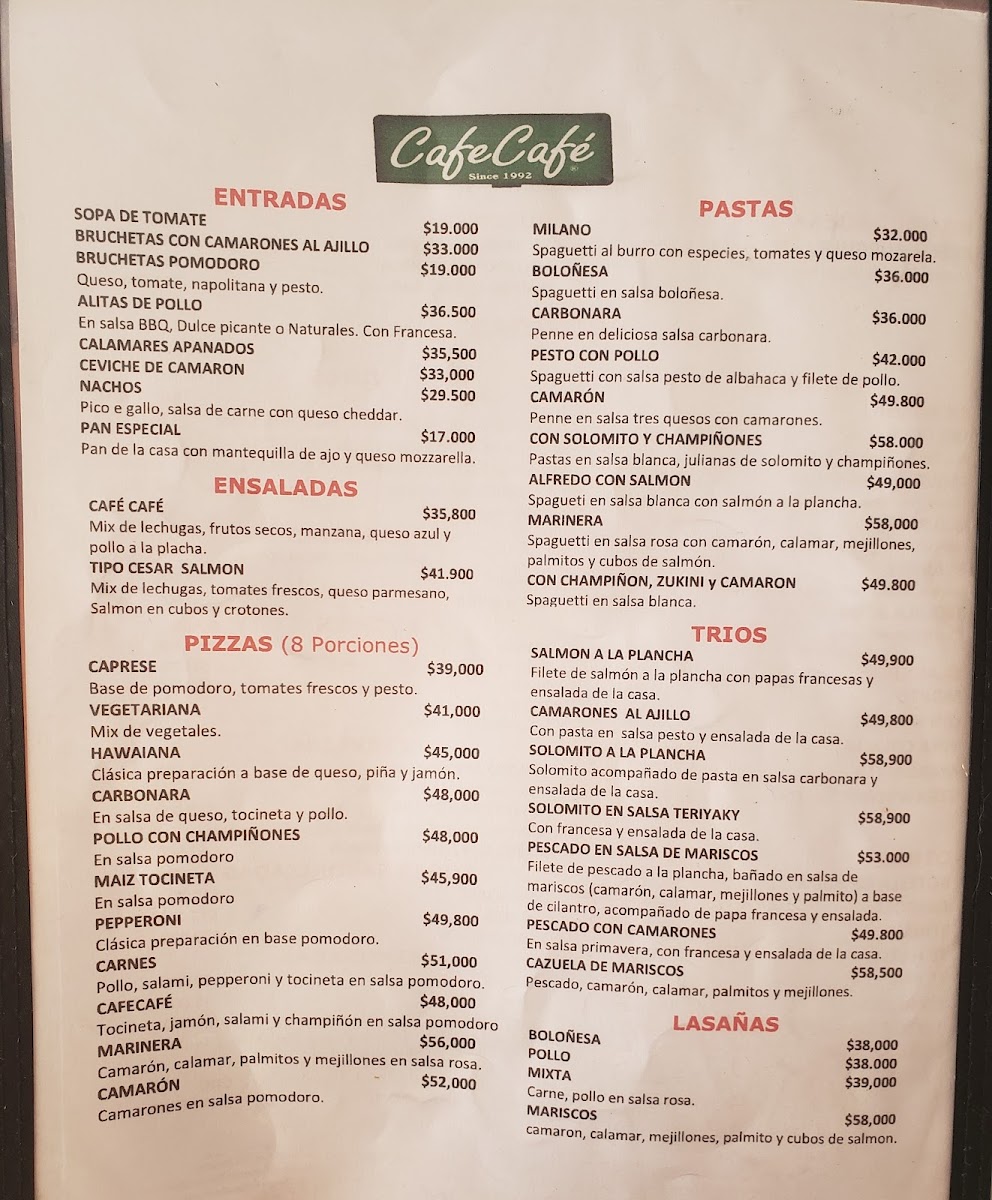 Cafe Cafe Since 1992, located in the vibrant Avenida Colombia in San Andrés, Colombia, is a culinary gem known for its fresh, quality dishes. With a history spanning over three decades, this charming establishment offers a delightful array of Italian and local cuisine, including highly praised pasta pomodoro and savory pizzas. Guests appreciate the amicable and attentive service, creating a welcoming atmosphere where smiles are abundant. While the bustling locale may lead to occasional wait times, the flavorful options, like their standout sangria and refreshing fruit drinks, make every visit worthwhile. Cafe Cafe Since 1992 truly embodies a blend of tradition and quality, perfect for any food lover.